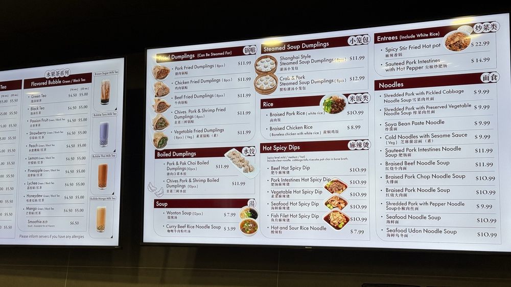 “ Well I live across the street from this place, and ever since it's opened I've been excited to try it. My roommate typically doesn't like this type of food, but in rare form she suggested it so I jumped on it. I'm not disappointed and I'll likely return. I'll start with the positives, jump to a hilarious brief negative, and then end with the overall verdict (its positive). Skip to chapter 2 if you just want Alejandro's opinion of the food. Staff - excellent. I've only been here once but I was impressed. They led us in a direction of success, handing us menus, suggesting things, and being knowledgeable enough to answer our questions easily. The girl cleaning the tables after people left saw me stand up and she asked if she could help me. After requesting to-go boxes she was happy to get them. I like when they work as a team, and they did. I understand certain jobs need to be focused on by certain people. The hostess shouldn't be refilling peoples drinks or taking peoples orders, but it's always awkward when the "runners" bring a burger and fries without ketchup and since it's not their job to ask "is there anything else I can get you?" everything gets cold by the time the waitress gets back for a checkup. A bussboy/girl isnt going to go mix you a drink for the bar... Again, only was here once but the teamwork seemed to exist here which was great to see. The only negative is the payment process (specifically tipping). For their sake lets assume its a glitch, but part of me thinks its intentional, or at least they're aware of it but slow to change it or don't want to change it at all. As a numbers guy, i don't blame them for not wanting to change it but from a customers view its pretty "sus." Digitally on their credit card machine: Subtotal: $33 Tip $5 Total: $38 -------------- Then they print out a receipt saying: Total: $38 Would you like to add tips? 15% $5, Total = $43 18% $6, Total $44 20% $6.75, Total $44.75. -------------- I understand places adding 16-20% gratuity for large parties, notifying them, and then still offering them a spot to add more tip if they'd like. But this one is slick, and just rubbed me the wrong way. Being opened for as long as they have been I'm pretty sure they're aware but don't care to change it. Please tip them, just make sure you WANT to double tip them if you fall for them asking for you twice. Saying "no i dont want to tip" is awkward, so it almost makes you want to say yes again. I have major OCD especially with numbers and money, so this likely sounds like a bigger deal than it is. But this was my interpretation of my experience. Chapter 2, the food. I loved it! Vegetable spring rolls were pretty good. Had that illusion of health even though you know it's not. But it tasted great. Sort of shocked it came with packets of duck sauce but didn't change my opinion of them. $1.50 each means they won, but so did we. It's a fair add on you wont regret. I ordered the Shanghai style steamed dumplings. I'm no SME (subject matter expert) on this style of food. I dont know if it was presented authentic, terrible or mediocre. But I can tell you I enjoyed the experience and I was happy with it all! There was a lot more liquid inside of the dumplings than I expected. Turns out that's why they call it a soup dumpling. I tried the passion fruit bubble tea. I've never snorted coke, but this was the oral equivalent of the biggest rush I've ever been on just with a sip or two. I'll pass on this from here on out but I appreciate them suggesting it to try. Just way too sweet for and old guy like me. My roommate had the seafood noodle soup. I thought it looked 8/10 but she said it was 9.5/10. But it did look good and was affordable. Overall verdict is great. It's unique to coral springs to have a spot like this. They're polite, helpful and send good and affordable food your way. Just don't fall for the double tip unless you absolutely are aware and want to double tip. But for the food and experience, i approve! ”